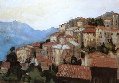 Korsische Bergsiedlung Acryl-Gouache auf Leinwand, 90 x 130 cm