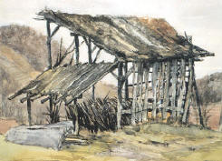 Bretterstadel im Ruhestand, 1978 Aquarell, 33 x 49 cm